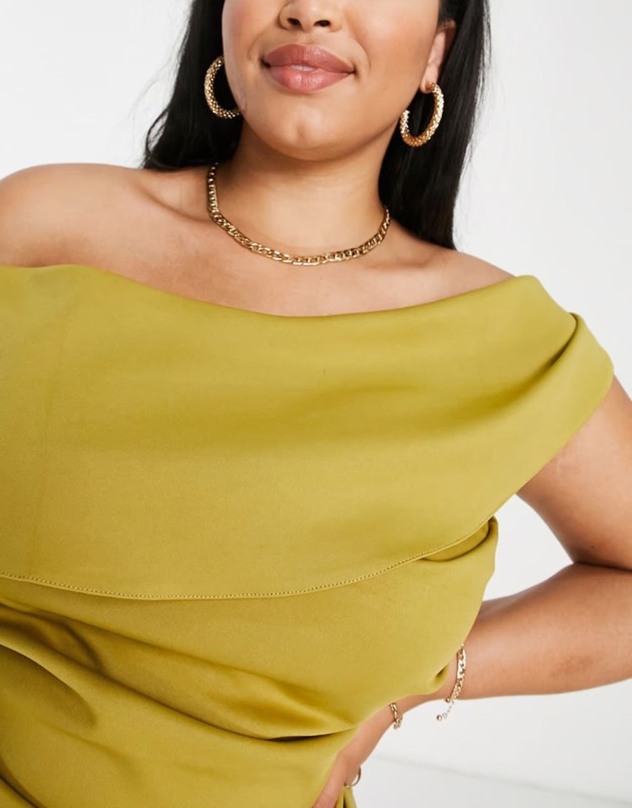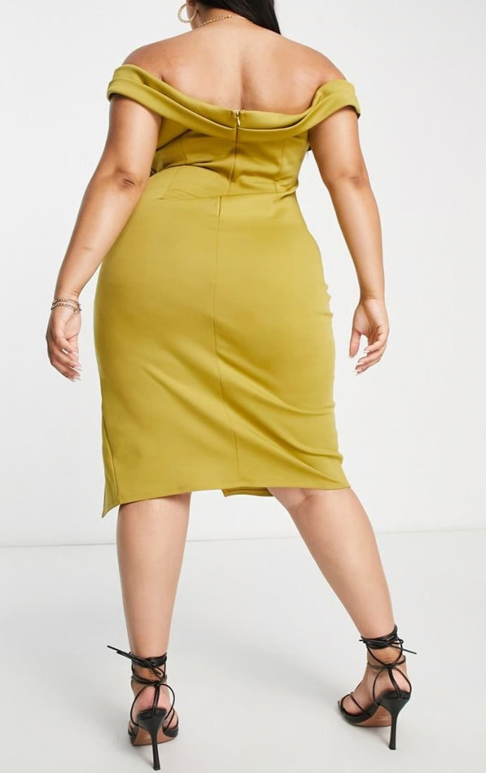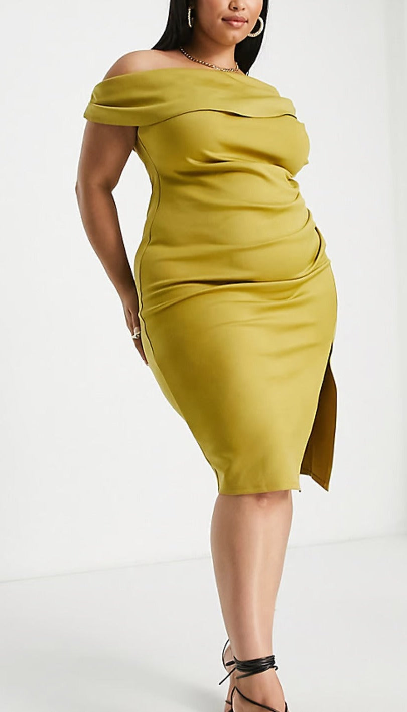 Yellow Off-The-Shoulder Midi ASOS Curve Dress w/ High Slit